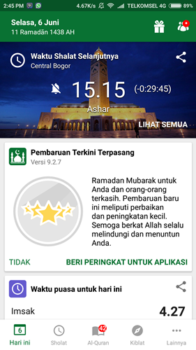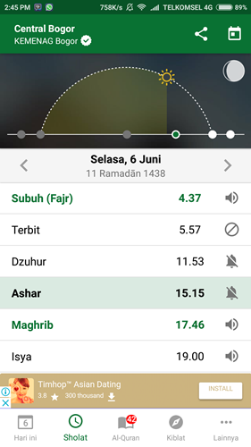 Oh ya satu lagi, di dalam aplikasi Muslim Pro pun terdapat jadwal Imsak hingga sholat lima waktu yang lengkap selama bulan Ramadhan.