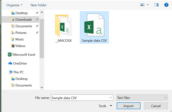 - Kemudian, pilih data berekstensi .csv Anda yang ingin diubah ke .xls dan tekan Import.