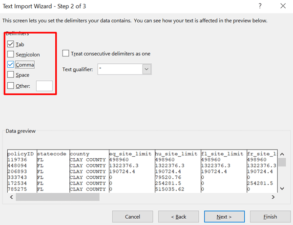 - Jangan lupa juga untuk memilih opsi Delimited yang memungkinkan sistem untuk memisahkan bagian-bagian per data berdasarkan letak tanda koma.