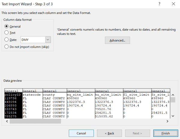 - Di bagian Column Data Format, pilih opsi General, kemudian tekan tombol Finish.