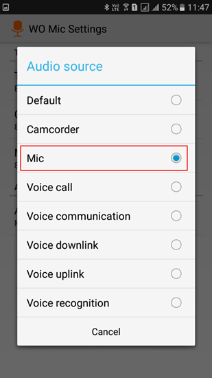 - Kemudian masuk ke bagian Settings dan pada bagian Audio Source, pastikan Anda memilih opsi Mic.