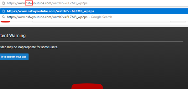 - Sekarang untuk bisa menonton video tersebut, tambahkan kata “nsfw” di sebelum kata YouTube dan tekan tombol Enter.