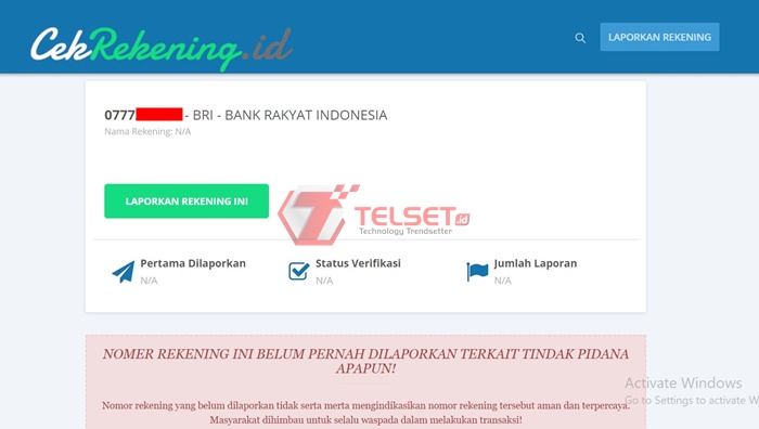 - Apabila nomor rekening masih tergolong aman atau tidak pernah dilaporkan masyarakat, maka Anda akan mengetahuinya pada notifikasi di bagian bawah.