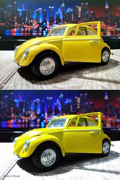 Ketiga foto diatas diambil dalam ruangan dengan penerangan lampu TL. Redmi 2 Prime senantiasa mencoba menaikkan tingkat brightness dan lebih agresif dalam membuat objek tampil lebih tajam, walau akhirnya mengabaikan detail di sekitar termasuk ketepatan warna. Meizu M2 lebih berusaha membuat warna dan kecerahan lebih seimbang.