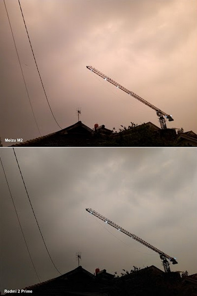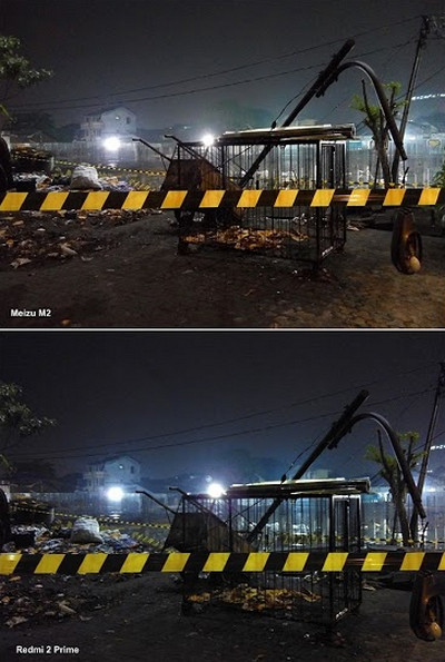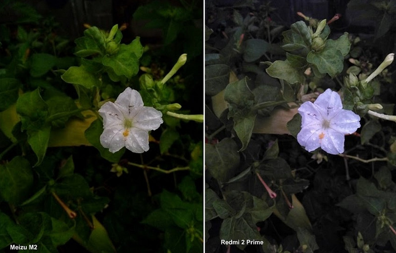 Redmi 2 Prime membutuhkan waktu sedikit lebih lama untuk mengambil foto, apalagi dipencahayaan yang mulai tidak terang, dibanding Meizu M2. Hasilnya seringkali butuh waktu lebih lama untuk diam menahan smartphone selama foto diambil, dan hasil foto cenderung mudah bergoyang.