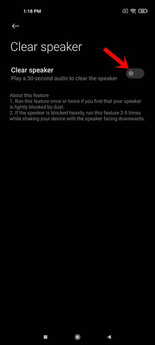 Adapun cara kerja dari fitur Clear Speaker sendiri adalah dengan menghidupkan suara yang keras selama kurang lebih 30 detik.