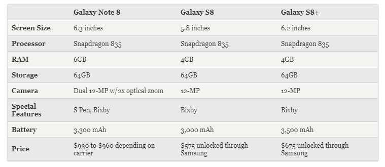 Pasalnya beberapa fitur Note 8 serupa dalam beberapa dari S8 dan S8+. Note 8 menawarkan layar Infinity Display yang melengkung dari tepi ke tepi, juga tombol Home yang sensitif dan pembaca sidik jari yang terpasang kembali disisi kamera.