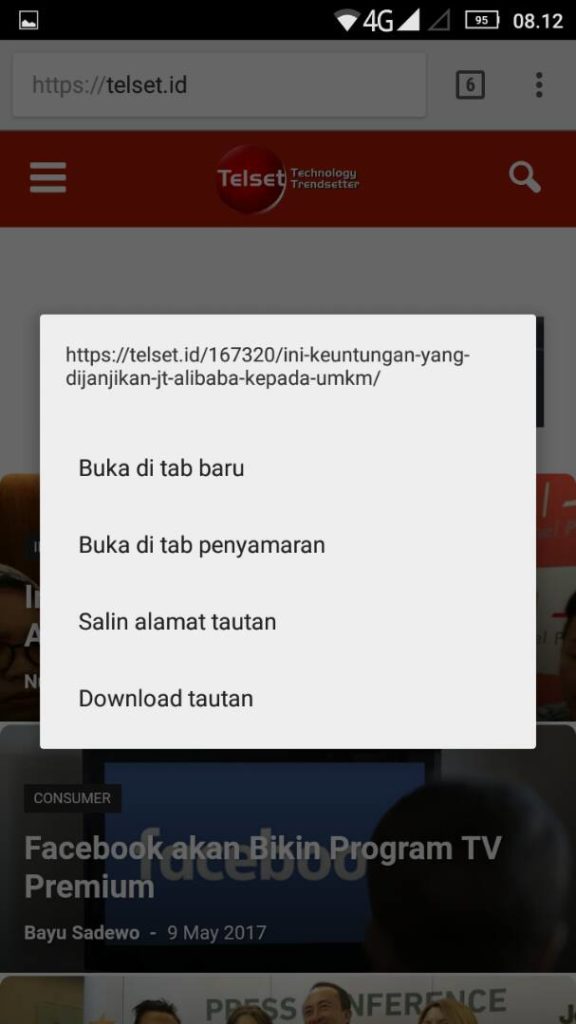 Hal yang harus dilakukan selanjutnya adalah memilih satu link yang ingin disimpan secara offline. Lalu sentuh dan tahan link tersebut hingga ada popup muncul.