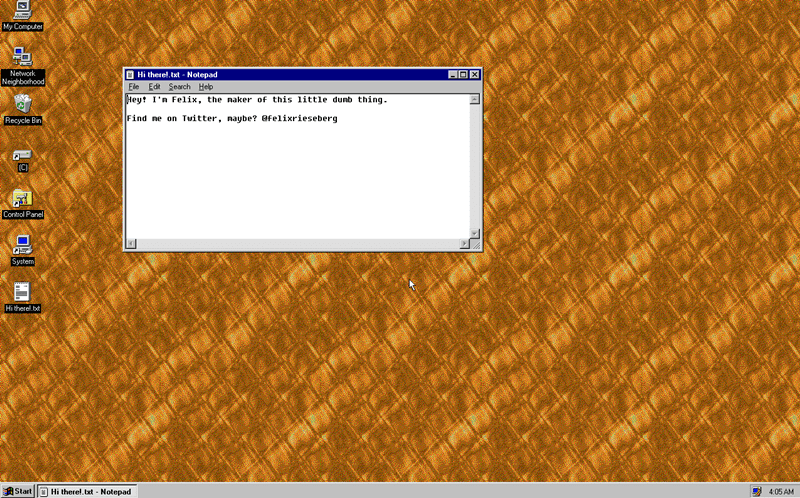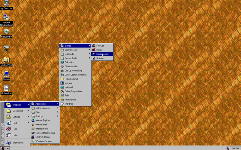 - Akan muncul tampilan dasar Windows 95 yang klasik. Meski ini merupakan aplikasi, Anda bisa menjalankan seluruh fungsi Windows 95, seperti game, Microsoft Paint, Wordpad, dan lainnya.