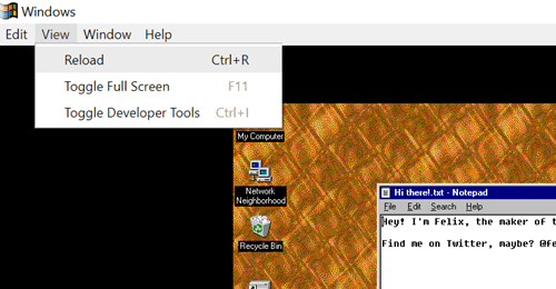 - Nah, jika Windows 95 berjalan tidak semestinya, Anda bisa me-reset aplikasi itu dengan menekan tombol View dan pilih Reload.