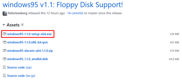 - Pertama yang harus Anda lakukan adalah akses situs Github untuk men-download file aplikasi Windows 95 dengan ekstensi .exe.