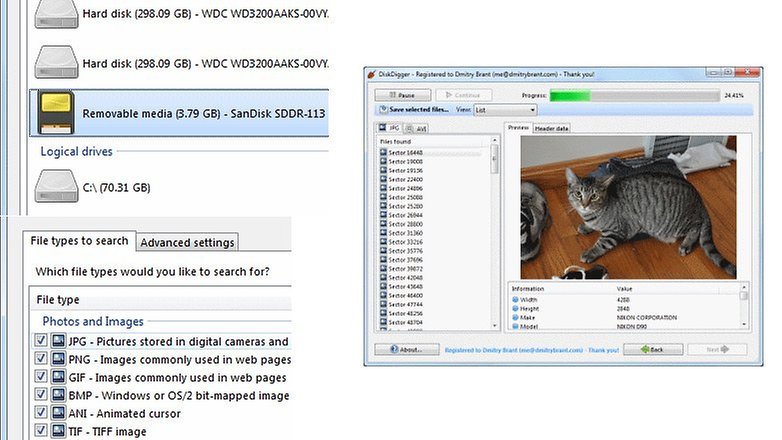 Banyak aplikasi yang dapat digunakan, namun salah satu yang patut untuk dicoba adalah menggunakan DiskDigger. Aplikasi ini tersedia di sistem operasi Windows dan Android yang memiliki keunggulannya masing-masing.