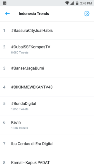 - Kembali ke halaman Search, otomatis trending topic akan berubah hanya sebatas negara yang Anda pilih saja.