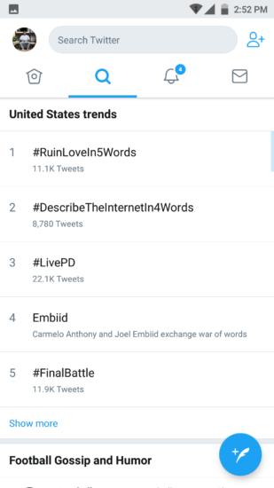 - Kemudian, tepat di bagian bawah trending, tekan tombol Show more untuk melihat trending topic secara keseluruhan.