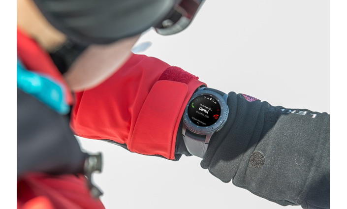 Seseru dan semenariknya kegiatan ski, kadang kita perlu untuk tetap terhubung. Untungnya, dengan Gear S3, Anda dapat menerima telepon, memeriksa pesan masuk dan segera mengirim balasan cepat dengan memutar bezel, tanpa perlu mengeluarkan smartphone dari saku Anda. Sementara itu, Model Gear S3 LTE memungkinkan Anda untuk terhubung bahkan tanpa smartphone, sehingga Anda dapat meninggalkan smartphone di pondok ski.