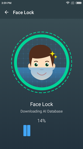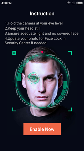 - Selanjutnya, tekan tombol Start Now dan kemudian akan ada proses download AI database yang akan dilakukan aplikasi. Tunggu beberapa saat dan tekan tombol Enable Now untuk memulai proses pemindaian wajah.
