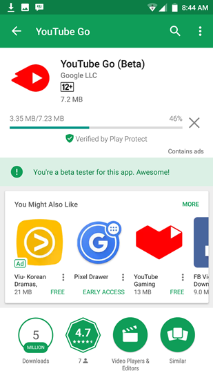 - Pertama yang harus Anda lakukan adalah download aplikasi YouTube Go yang telah tersedia di Google Play Store. Sekedar informasi, aplikasi ini memang sudah lama hadir di Play Store, namun masih berstatus Beta. Tapi saat ini versi final dari YouTube Go sudah bisa dirasakan masyarakat Indonesia.