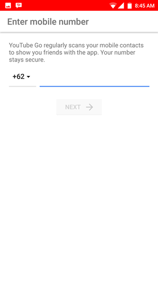 - Di halaman awal, Anda akan diminta untuk masukkan nomor telepon. Itu karena YouTube Go ingin menampilkan teman-teman Anda yang telah menggunakan aplikasi tersebut. Google menjamin keamanan dari nomor telepon Anda.
