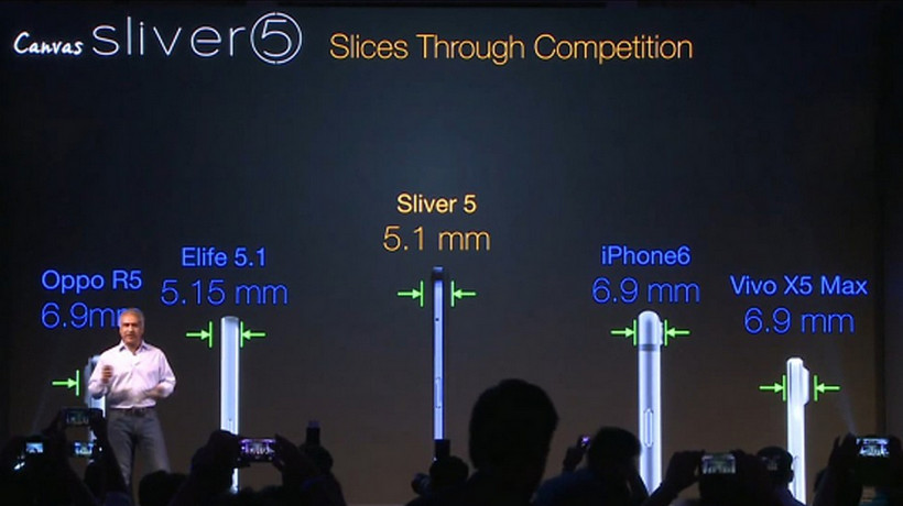 Hal itulah yang menjadi dasar Micromax mengatakan bahwa Canvas Sliver 5 lebih layak disebut sebagai smartphone tertipis di dunia ketimbang Vivo X5 Max, karena Canvas Sliver memiliki ketebalan 5,1 tanpa ada bagian yang menonjol.