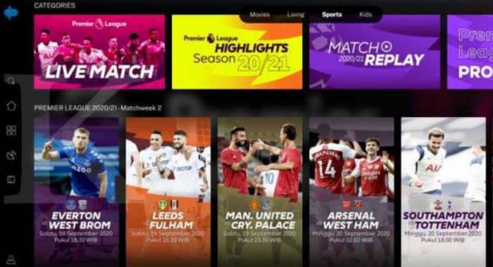 Tentu yang paling diharapkan dan ditunggu-tunggu oleh pengguna adalah bisa menyaksilan tayangan langsung Liga Inggris merupakan salah satu konten unggulan yang dihadirkan.