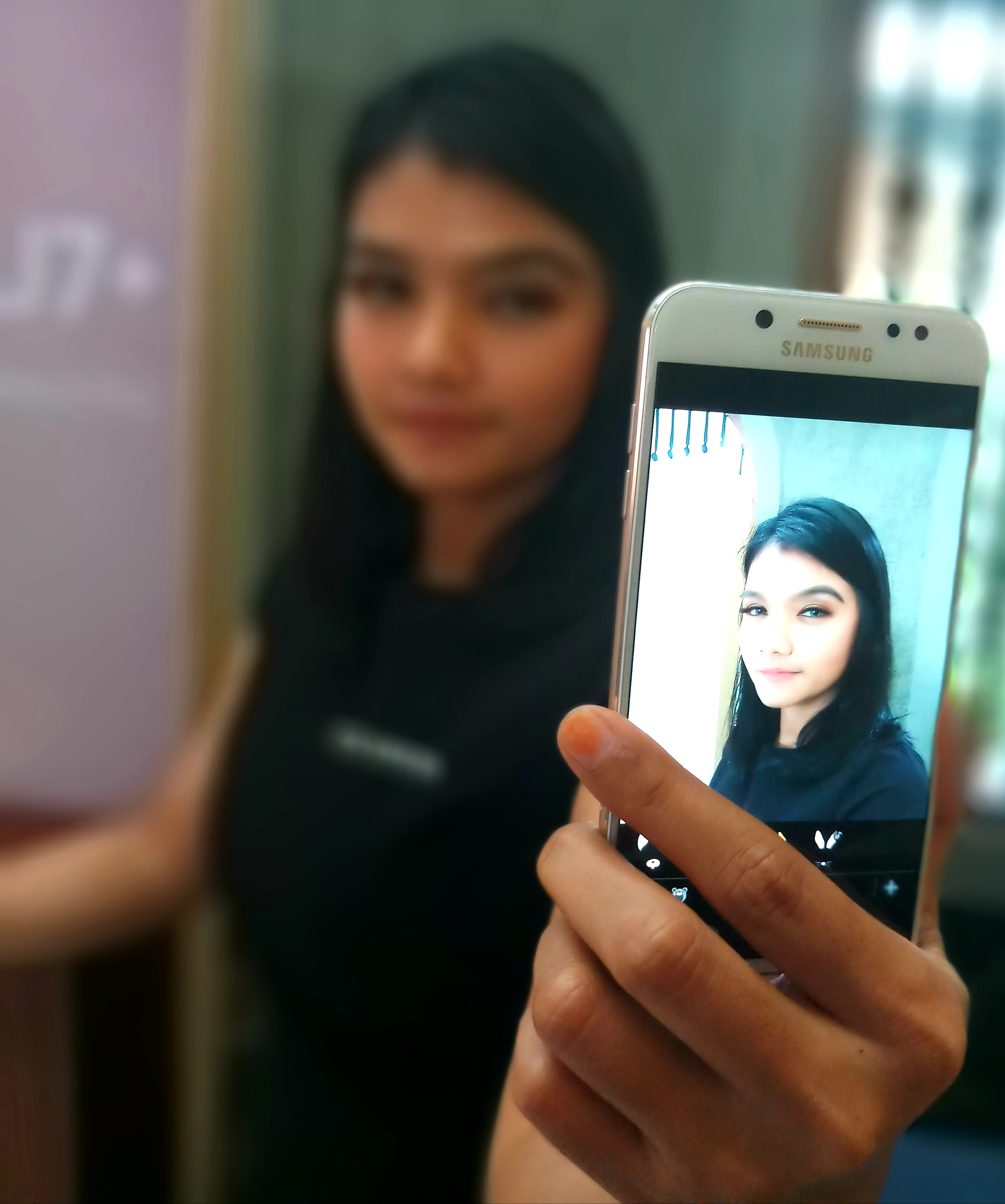 Kamera depan Galaxy J7+ memiliki 16MP high-resolution dan flash LED – memungkinkan pengguna untuk mengambil swa foto terbaik, ditambah lagi dengan efek bokeh. Selain itu, kamera Galaxy J7+ juga sudah memiliki in-app stiker dan filter yang membuat pengalaman foto personal maupun bersama teman akan lebih menyenangkan.