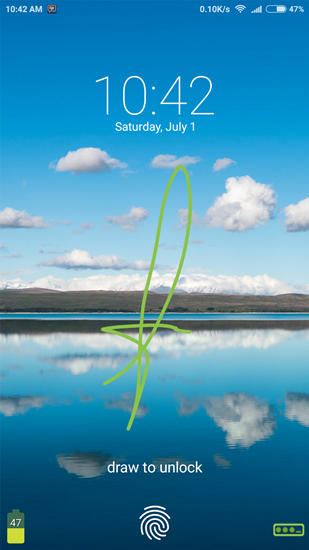 - Nah sekarang coba kunci smartphone Anda dan akan telihat model lockscreen baru. Sekarang buka smartphone Anda dengan menggambar gesture yang sudah dibuat.