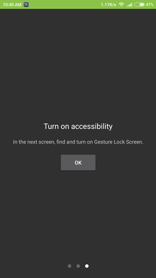 - Selanjutnya aktifkan lockscreen gesture di pengaturan Accessibility dengan menekan tombol Ok di halaman selanjutnya.