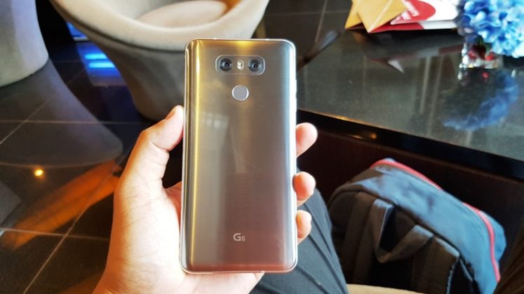 Masih sama seperti LG G5, pada LG G6 terdapat dual-camera yang satu frame dengan LED Flash. Tepat di bawah frame tersebut, ada sensor sidik jari berbentuk lingkaran, mirip seperti sensor sidik jari smartphone pada umumnya.
