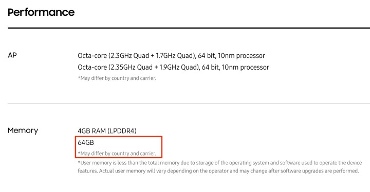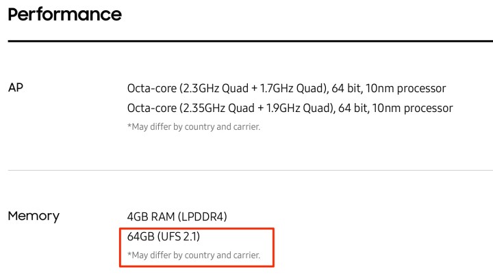Samsung belum mengeluarkan pernyataan resmi mengenai masalah tersebut. Mungkin diperkirakan bahwa dengan pelan-pelan menghapus penyebutan ke penyimpanan UFS 2.1.