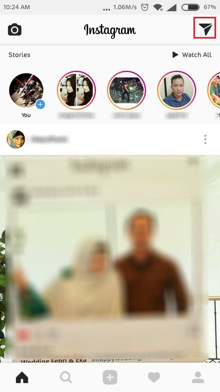 Pertama-tama, yang harus dilakukan adalah membuka aplikasi Instagram. Setelah itu, pilih menu Direct Message (DM), yang di representasikan dengan ikon pesawat kertas di pojok kanan atas.