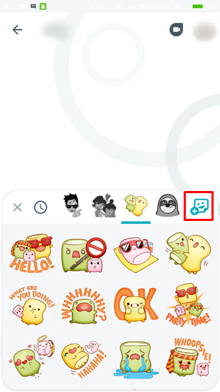 - Kemudian, tekan ikon Sticker dan kemudian tekan ikon Get more sticker sets yang ada di paling kanan di bar sticker.