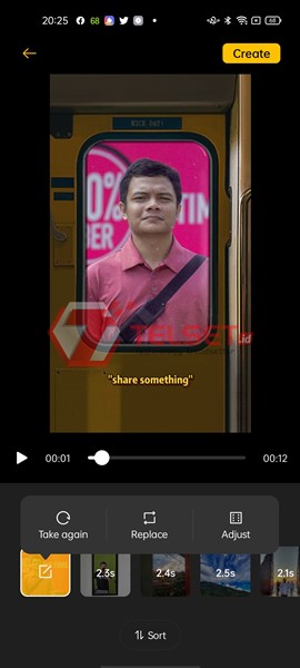 - Salah satu yang kami coba adalah Creative Train dengan durasi video sampai 11 detik. Anda juga bisa memilih template lainnya yang disediakan sistem kamera.