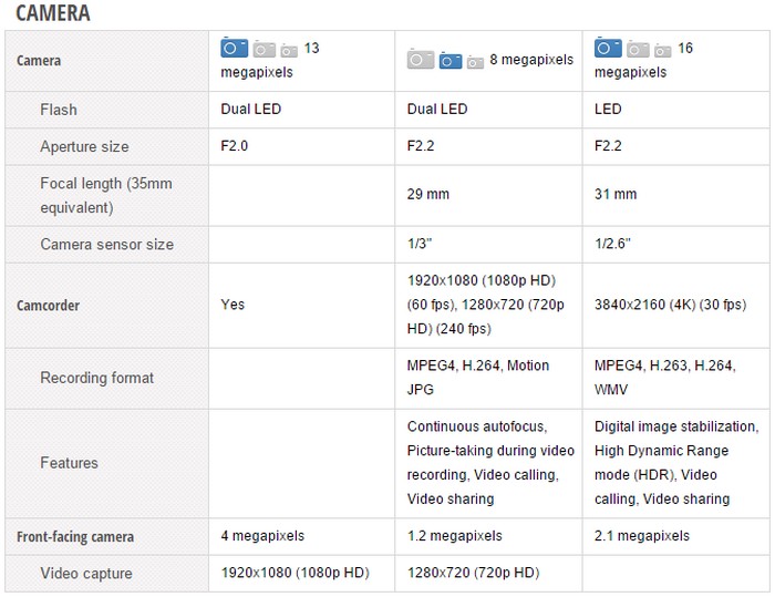 Spesifikasi lainnya, kamera belakang 13MP dengan OIS dan kamera depan 4MP dengan dua micron pixel dengan sistem operasi Android 5.0, dan baterai 3090mAh.