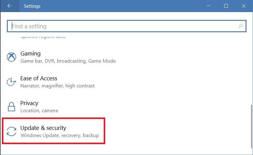 Selanjutnya, sebuah menu baru akan terbuka. Cari menu Update & security.