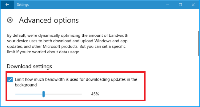Setelah melewati banyak menu, barulah Anda bisa mengatur bandwidth dari kecepatan unduhan Windows 10 Anda. Caranya dengan mencentang Limit how much bandwidth for downloading updates in the background, lalu pilih ukuran sesuai keinginan Anda.