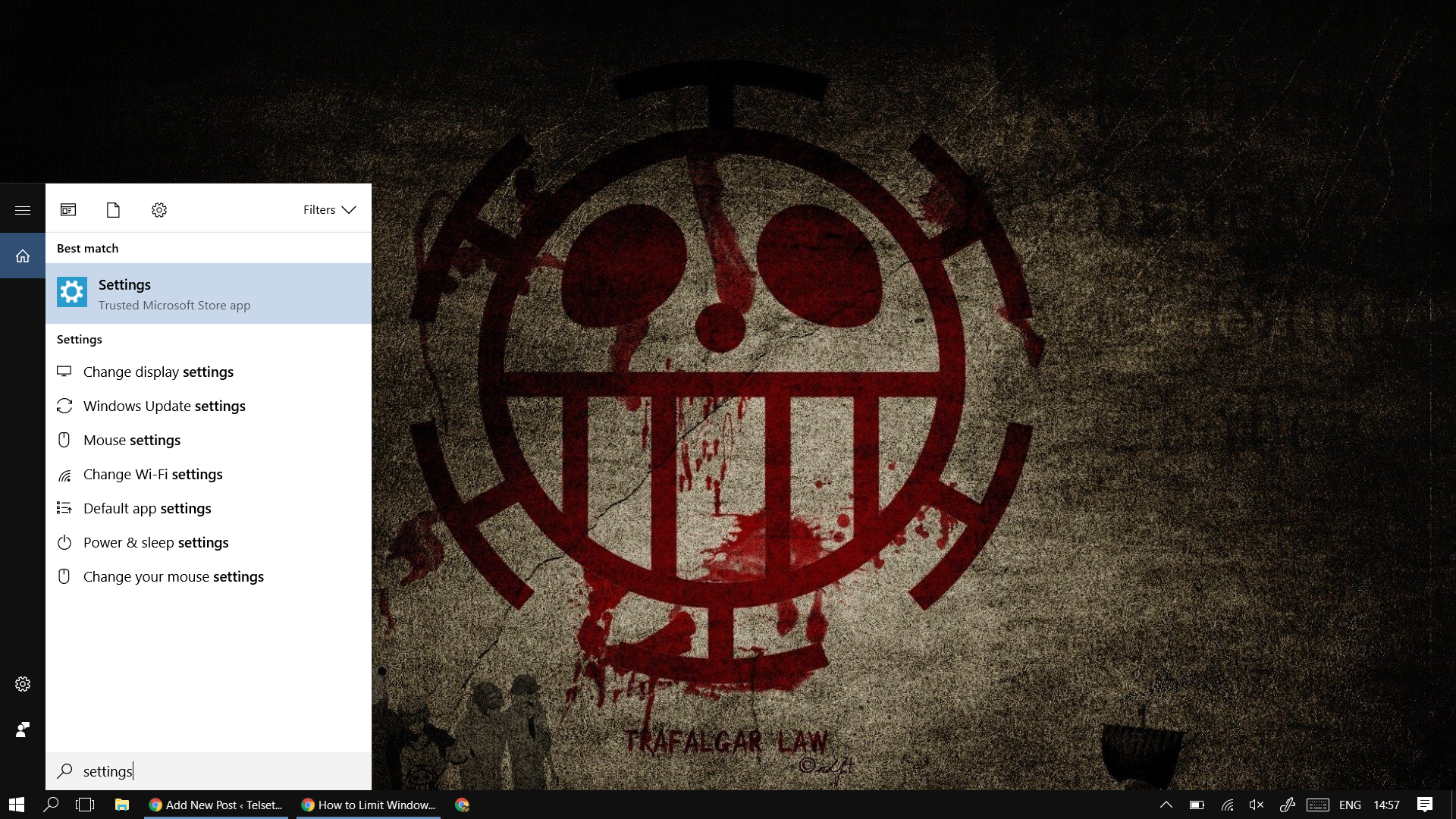 Pertama, yang harus dilakukan adalah memencet ikon search di Taskbar, lalu di kotak pencarian, tuliskan Settings. Setelah itu, klik menu Settings.