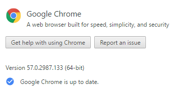 - Pertama yang harus Anda lakukan adalah buka halaman Settings di Google Chrome dan lihat bagian About. Jika versi Google Chrome belum mencapai versi 57 ke atas, coba untuk memperbarui versinya. Tapi jika sudah, kita lanjut ke langkah selanjutnya.