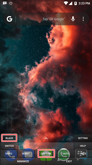 - Namun jika Anda “risih” dengan interface tadi, tekan saja tombol Black yang mungkinkan Anda untuk mengambil gambar menggunakan tombol Volume dengan kondisi layar yang mati.