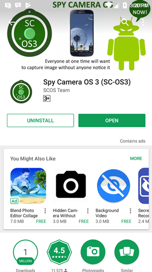 - Pertama yang harus Anda adalah install aplikasi Spy Camera OS 3 yang telah tersedia di Google Play Store.