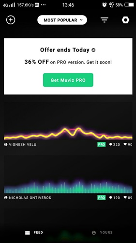- Selanjutnya akan tampil berbagai tampilan visualizer musik pada aplikasi ini dari yang Pro hingga yang Free.
