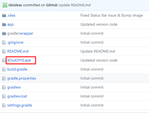 Pertama yang harus Anda lakukan adalah masuk ke halaman GitHub dari idoideas, kemudian pilih file XOutOf10.apk dan kemudian download file tersebut.