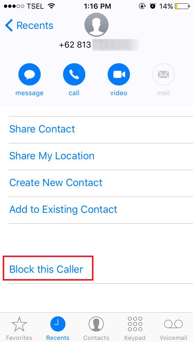 Menu baru akan terbuka setelah Anda mengetuk menu tersebut. Di bagian bawah, terdapat pilihan Bock this Caller. Lakukan langkah diatas sampai seluruh nomer yang ingin diblokir selesai.