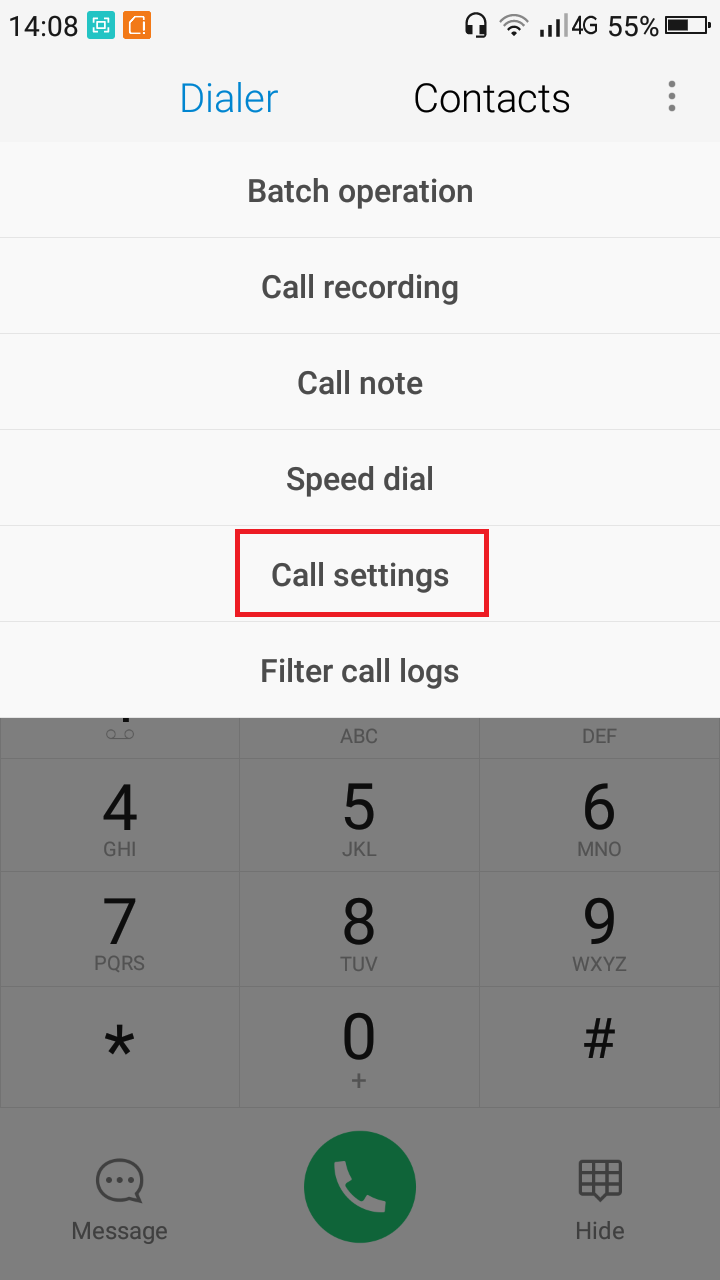 Setelah itu, akan muncul sebuah menu pop-down. Di menu itu, cari dan pilih menu Call Setting.