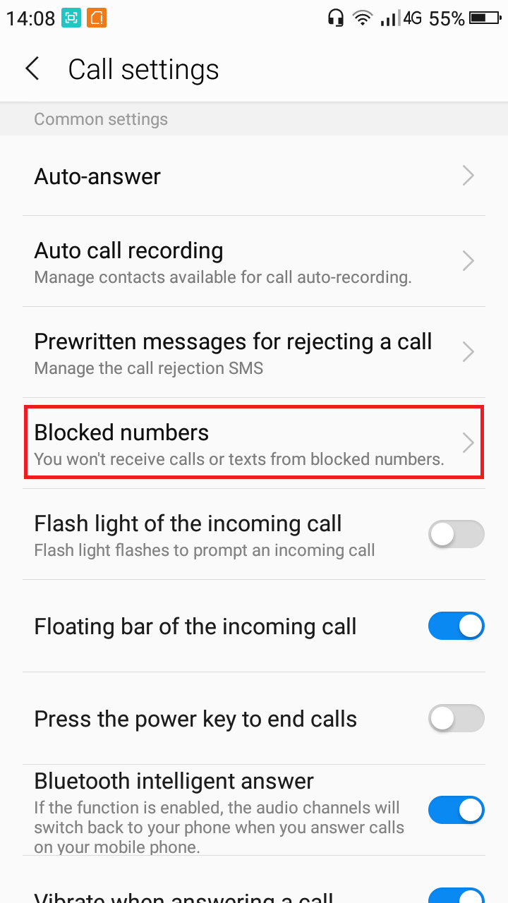 Sebuah menu baru akan muncul. Lalu cari dan klik menu Bloked Call.