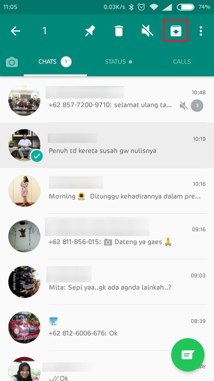 Lantas, bagaimana mengembalikan chat yang sudah kita sembunyikan tadi? Caranya pun sama mudahnya. Anda hanya harus memilih chat yang akan dikembalikan. Nah, alih-alih menekan ikon box dengan tanda panah ke bawah, kali ini Anda cukup menekan ikon box dengan tanda panah ke atas.
