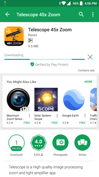 - Pertama yang harus Anda lakukan adalah dengan install aplikasi Telescope 45x Zoom di Google Play Store.