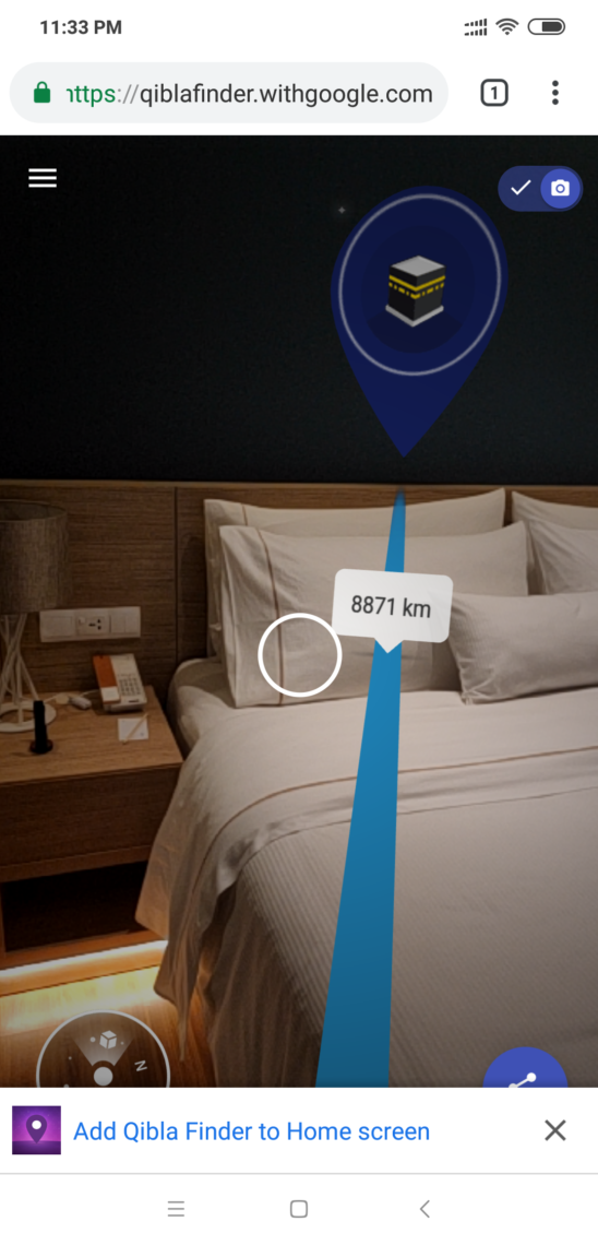 - Menariknya, saat smartphone di arahkan ke atas, Anda akan mendapatkan kalkulasi jaran dari lokasi saat ini ke Mekkah di Arab Saudi.