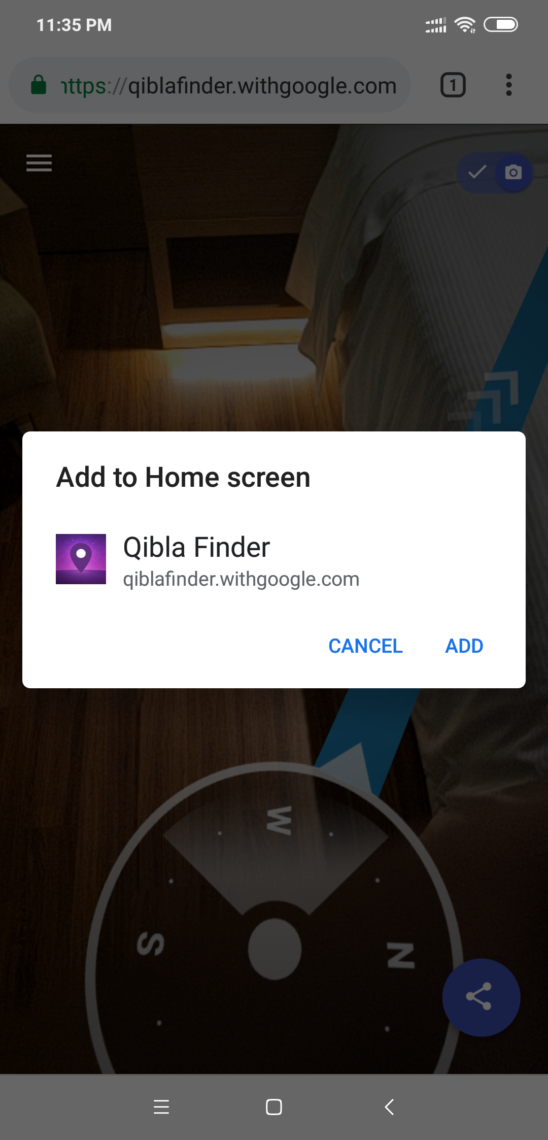 - Nah, untuk memudahkan Anda agar tidak mengakses browser lagi, tekan tombol Add Qibla Finder to Home Screen, agar Anda tinggal menekan ikon layanan ini untuk mengaksesnya kembali.