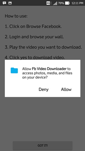 - Selanjutnya, jalankan aplikasi tersebut dan izinkan aplikasi untuk bisa mengakses media pada smartphone Anda dengan menekan tombol Allow.
