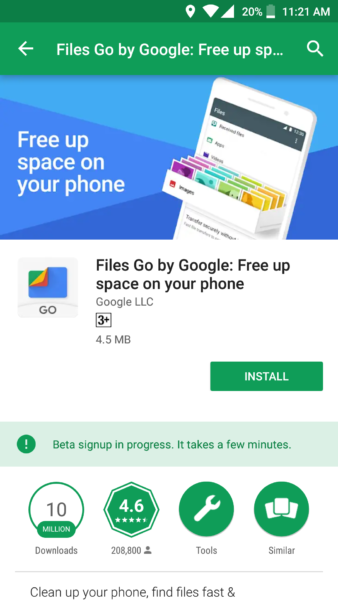 • Pertama yang harus Anda lakukan adalah install aplikasi Files Go terlebih dahulu di Google Play Store.